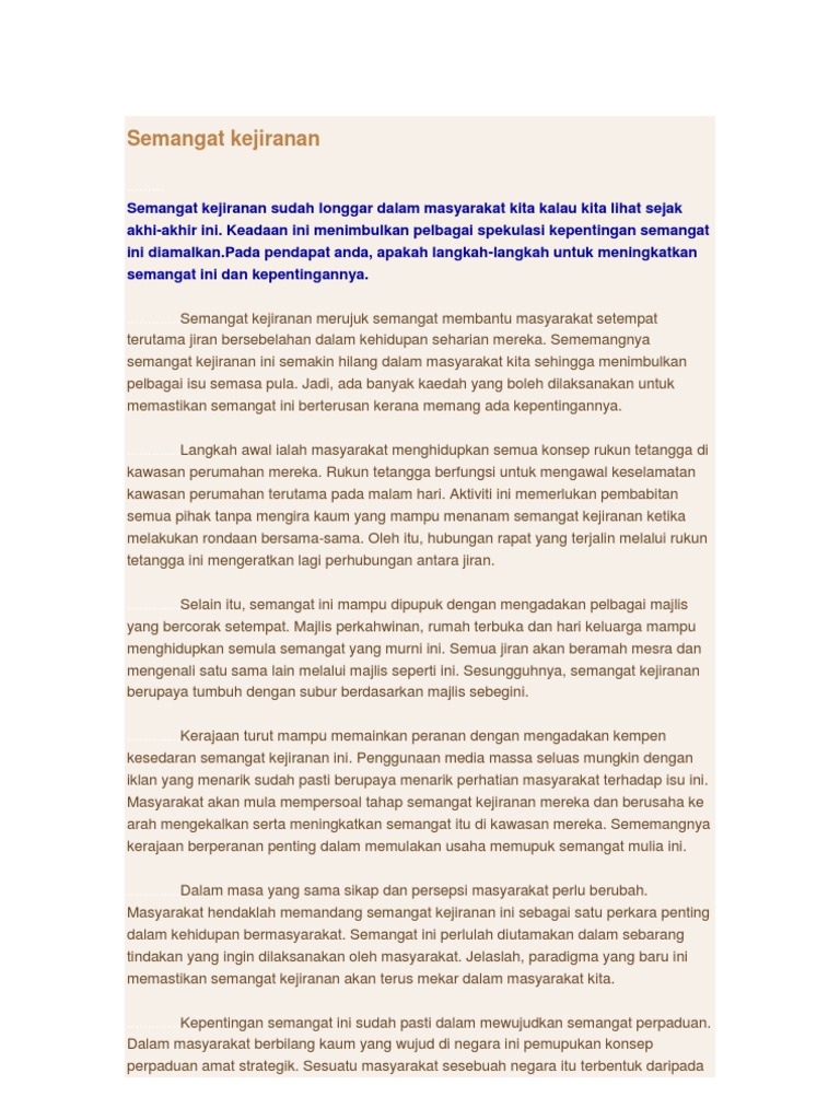 Download lagu karangan semangat kejiranan 4.3mb dan streaming kumpulan lagu karangan semangat kejiranan 4.3mb hasil diatas adalah hasil pencarian dari anda karangan semangat kejiranan mp3 dan menurut kami yang paling cocok adalah karangan semangat kejiranan. Dasawarsa, sama ada kita sedar atau tidak lantaran terlalu dihidangkan dengan pembangunan negara yang semakin gah di persada dunia. Karangan bm spm peribahasa yang sesuai dalam karangan. Semangat kejiranan merupakan aspek yang penting dalam kehidupan. Perpaduan antara rakyat tidak kira bangsa dan agama adalah sangat vital supaya peristiwa berdarah yang terjadi pada.