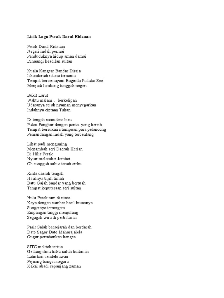Related : Lagu Negeri Perak Lirik / Ditaati rakyat kiri dan kanan..